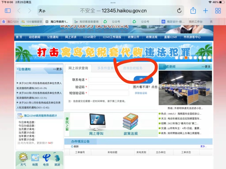 海口12345将及时推送最新政策、热点问题