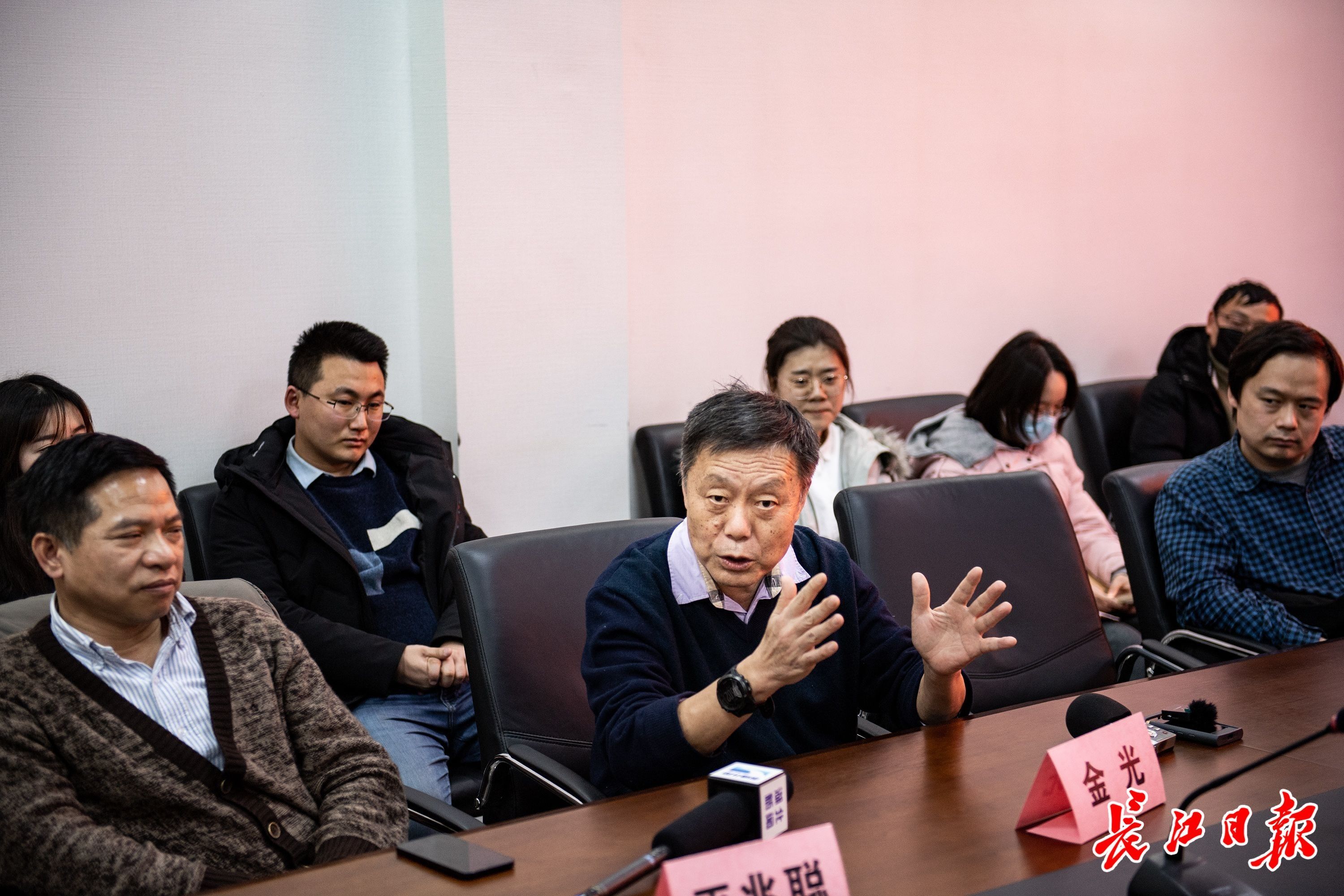 武汉大学金光教授(前排左二)。 长江日报记者任勇 摄