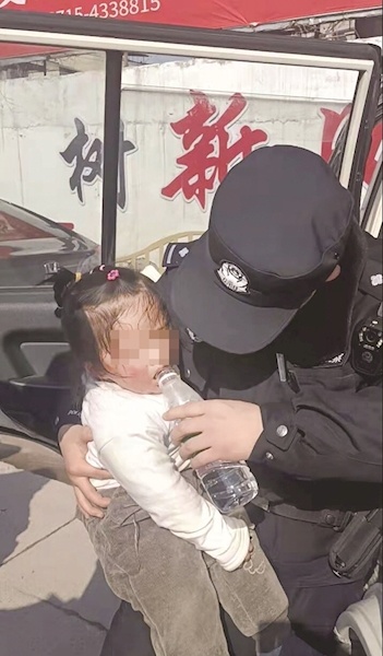 “当时车子正停在太阳底下,车内相当闷热。”民警告诉极目新闻记者,救出小孩后,他们马上解开孩子外套衣扣,并给她喂水(如图),但小孩喝了一口,吐出后再次昏迷。民警见状立即拨打120并让医院做好准备,并用警车把孩子送往通城县人民医院。同时,民警通过车牌信息也联系上了小孩家属。