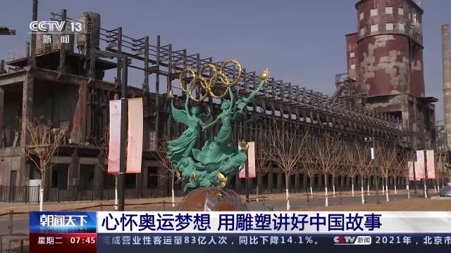 在距离延庆100多公里外的首钢冬奥园区,这座矗立在钢铁高炉之间的《奥运女神》雕像同样欢迎着各国运动员,它的创作者正是雕塑家黄剑。