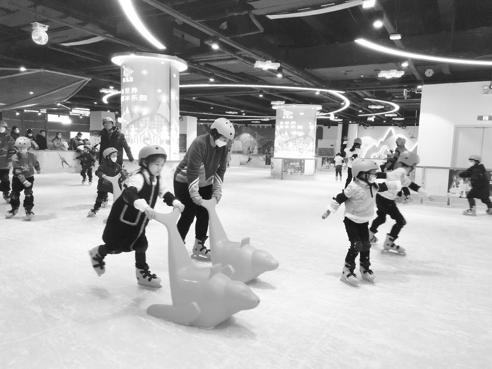 这样的供不应求场景,也同样出现在我市很多滑冰场上。我市各大商圈的冰雪消费热情高涨,商家积极探索商业与体育融合发展的新模式。勒泰中心、乐汇城、欢乐汇等城市综合体卖场先后引入“沉浸式”的冰雪业态,开设真冰溜冰场、模拟滑雪场,让市民们在家门口就能体验冰雪运动的乐趣。新百广场在运动区还推出了桌上mini冰壶、玩偶巡游、投壶等娱乐项目,吸引消费者参与其中。
