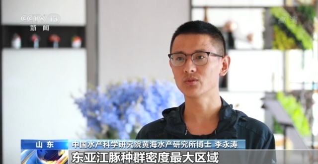 中国水产科学研究院黄海水产研究所博士 李永涛:经过三年对长岛海域东亚江豚的调查研究发现,长岛海域的东亚江豚种群至少在2000头以上,数量最高时可达5000多头,这个结果就证实长岛海域是黄渤海海域东亚江豚种群密度最大的区域。说明长岛海域的环境质量良好、鱼类等饵料生物资源充足,能够充分满足东亚江豚的生活需求,是东亚江豚的重要栖息地。