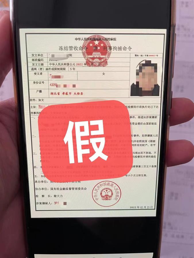 终于意识到自己差点上当的罗某这才告诉民警,2月23日上午,她接到了自称河南省郑州市民警的来电,对方称罗某涉嫌洗黑钱,并给她发来了一张逮捕证,要求罗某将钱转至对方发来的安全账户,并不能对外泄露消息,否则就要承担法律责任。