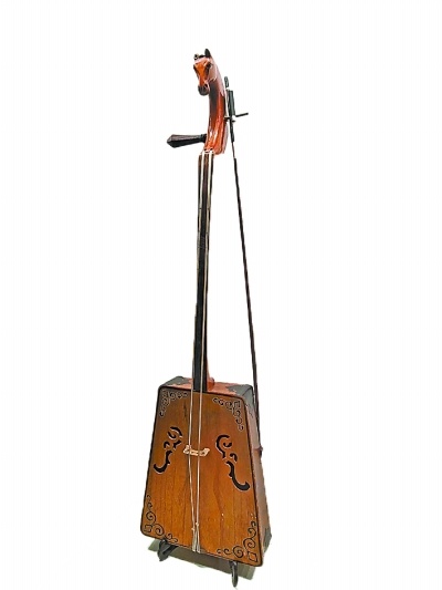 3、马头琴:是中国少数民族——蒙古族拉弦乐器,因琴杆上端雕有马头而得名。马头琴的历史悠久,从唐宋时期拉弦乐器奚琴发展演变而来。马头琴是蒙古民族的代表性乐器,不但在中国和世界乐器家族中占有一席之地,也是民间艺人和牧民们喜欢的乐器,马头琴所演奏的乐曲具有深沉粗犷、激昂的特点,体现了蒙古民族的生产、生活和草原风格。相传有一牧人为怀念小马,取其腿骨为柱,头骨为筒,尾毛为弓弦,制成二弦琴,并按小马的模样雕刻了一个马头装在琴柄的顶部,因此得名。
