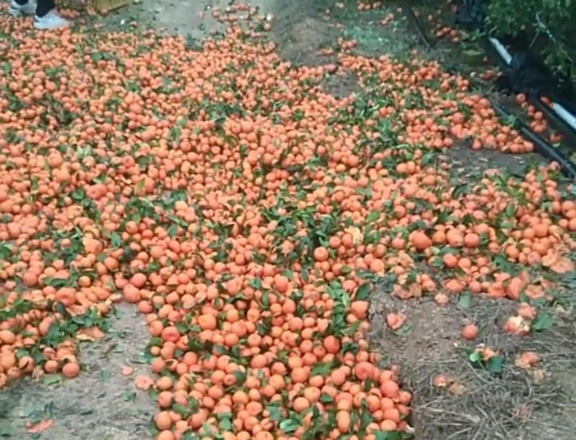 有果农倾倒砂糖橘(图源:视频截图)