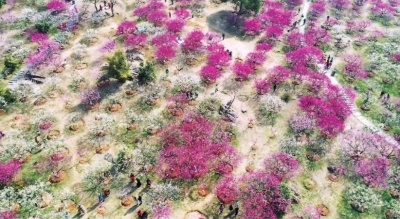 3月2日,马鞍山森林公园占地30亩的1500株各色梅花进入盛花期,600亩油菜花含苞待放,吸引游客前来赏花踏青。