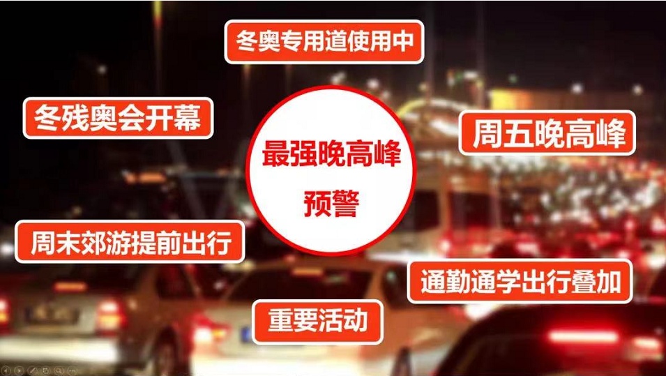 明天是3月4日,周五,机动车尾号3、8限行,周五常态晚高峰,中小学、幼儿园均已开学,企事业单位全面返岗复工,交通压力总体已恢复至春节前常态工作日水平。同时,冬残奥会开幕,冬残奥会专用道启用中,重要活动出行,受上述因素影响,交通压力突出。