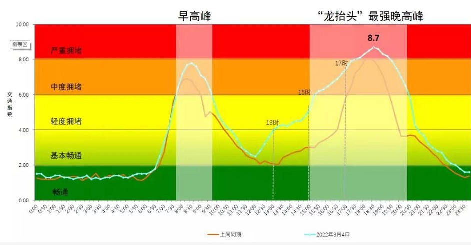 北京市交通运行监测调度中心路况预报显示,明日“龙抬头”,将迎来年度“最强晚高峰”。