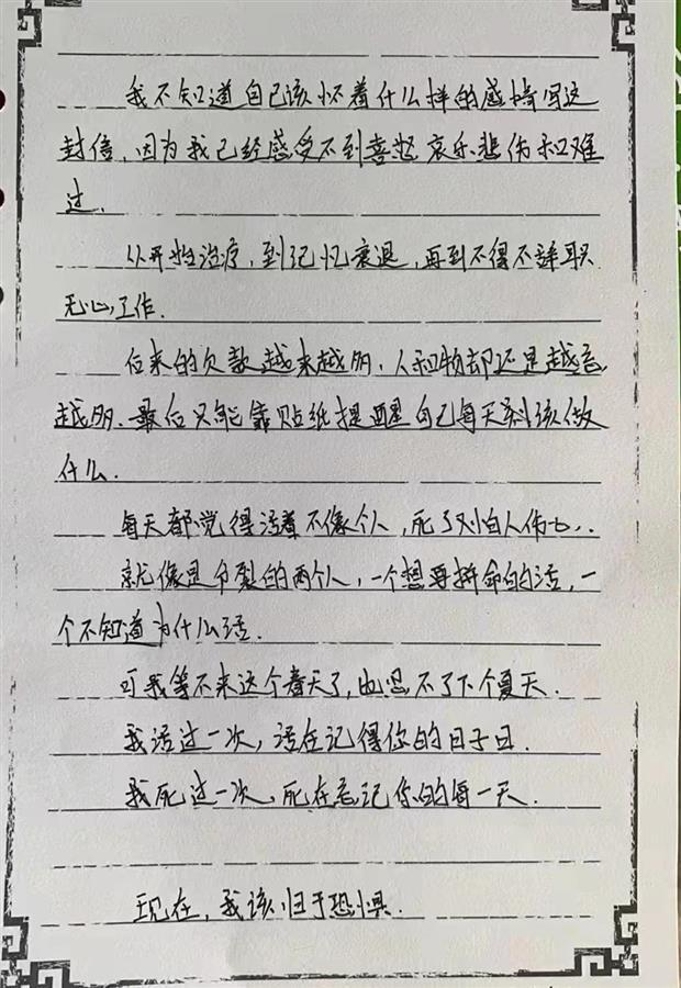 付倩倩在遗书中写道:“从开始治疗,到记忆衰退,再到不得不辞职,无心工作。”她为何而治疗,生了什么病?这些疑问家属此前都从未听她提起,到青岛后,付先生方才从女儿前同事处得知,此前付倩倩曾看过精神心理方面的医生。