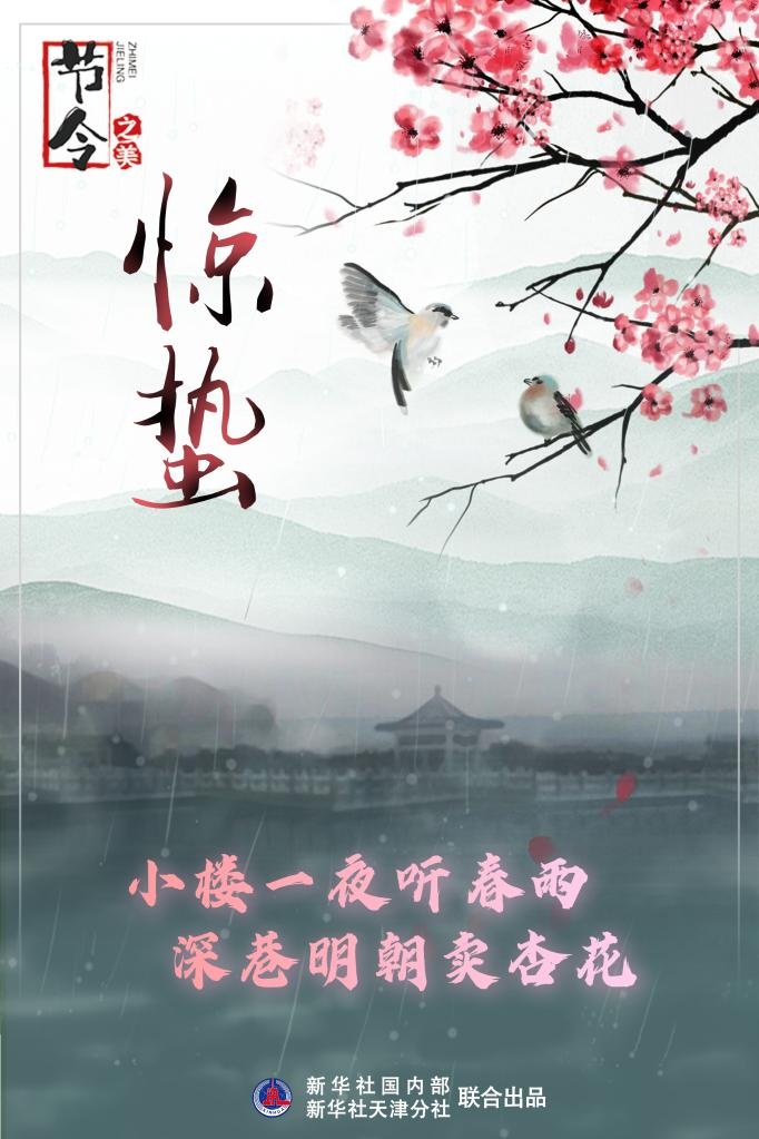“烟雨湿阑干,杏花惊蛰寒。”3月5日迎来惊蛰节气,古称“启蛰”,标志仲春开始。此时节,推开窗,明丽的春色映入眼帘。这惹人的春色藏在乍响的雷声、初绽的桃花和忙碌的农耕中,也藏在那一首首唯美的古诗中。这一抹抹春色在字里行间流淌,令人沉醉。