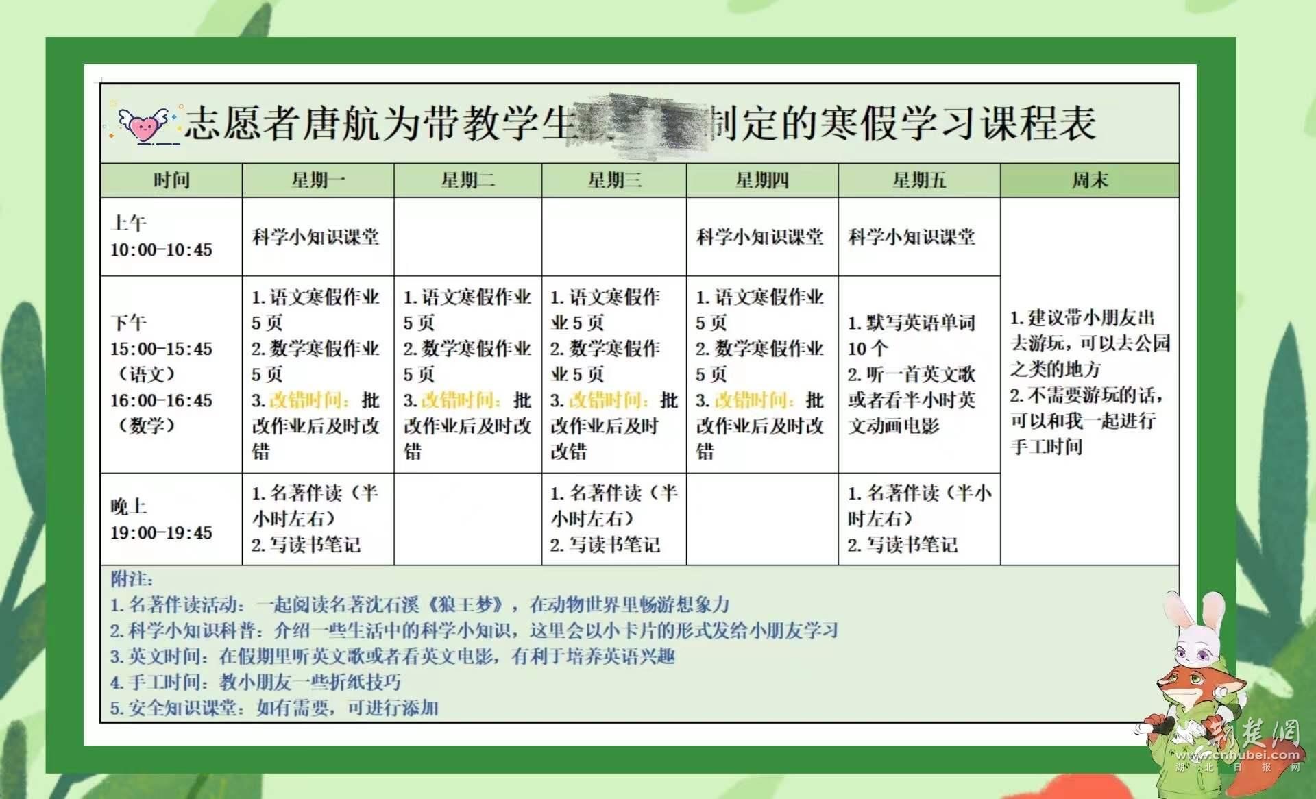 大学生志愿者为当地小学生制定课表。通讯员 供图