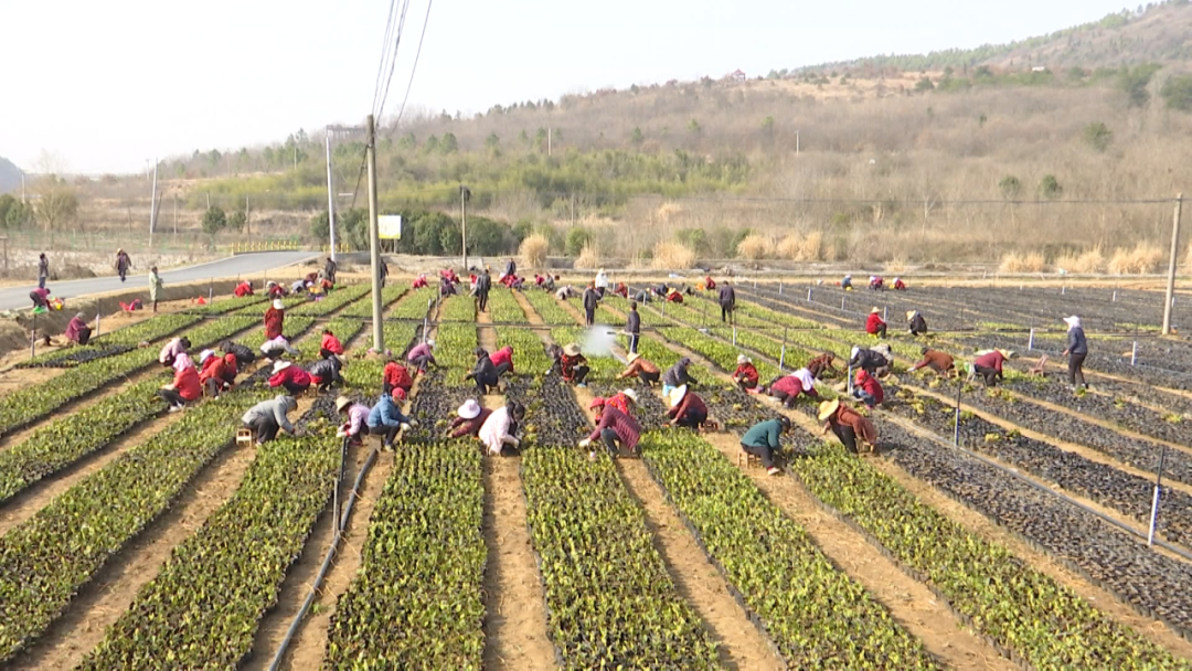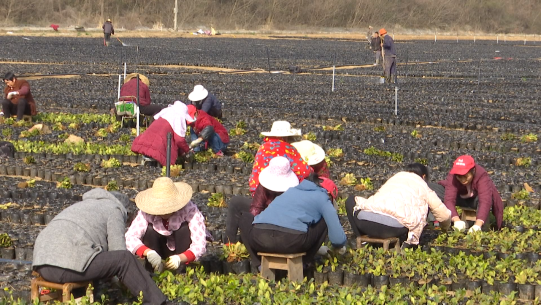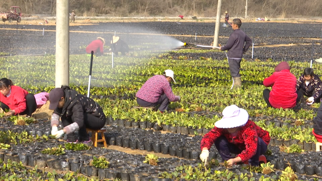 在周巷镇三联村苗木基地,工人们正忙着为幼苗除草、施肥、移苗。得益于苗木基地的建设,让村里不少老年人和妇女等弱劳动力群体有了一份稳定的收入。