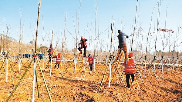 “项目成功与否直接和公司效益挂钩,这逼着我们一刻不能松懈。”邢军安介绍,短期以植树造林为主,中期发展适合精深加工、休闲采摘的特色农林产品,远期打造森林教育、森林康养和森林休闲旅游基地,从而实现一二三产业融合发展。