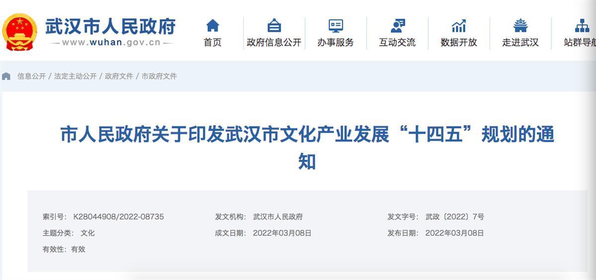 瞄准文化强市目标,武汉市提出,到2025年,加快建设中国数字创意之都,文化产业增加值占全市GDP的比重达到8%左右,培育规模以上文化企业达到1500家,新增市级文化产业园区10个,聚集文化企业3000家,新增上市以及新三板挂牌文化企业10家。