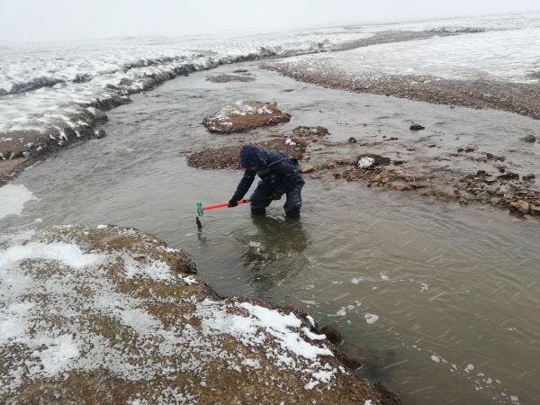 2019年4月,科考队五个人,两台车,开始了沿河寻觅长江南源鱼类越冬场的科考。他们专门找没有冻住的河段,一段一段找,发现一处,他们都要穿上防水服,带上采集设备,下到冰冷的河水中观察、采样,确定不是,就再往下找,就这样找了数百公里。