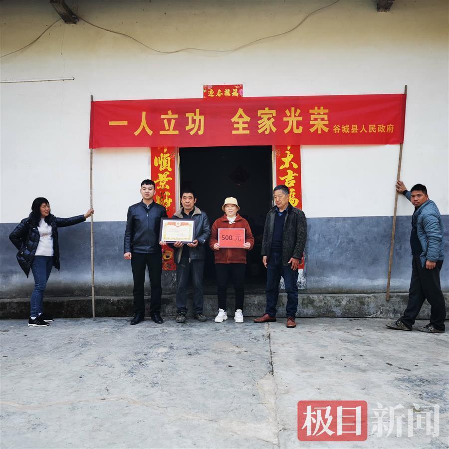 3月9日,湖北襄阳市谷城县紫金镇党委政府领导带领退役军人服务站工作人员,跋山涉水,敲锣打鼓,乘车、坐船又爬山,把在杭州服役的谷城籍现役军人陈吉涛荣立三等功的喜报和奖励金,送到居住在洪峪村的父母手中。
