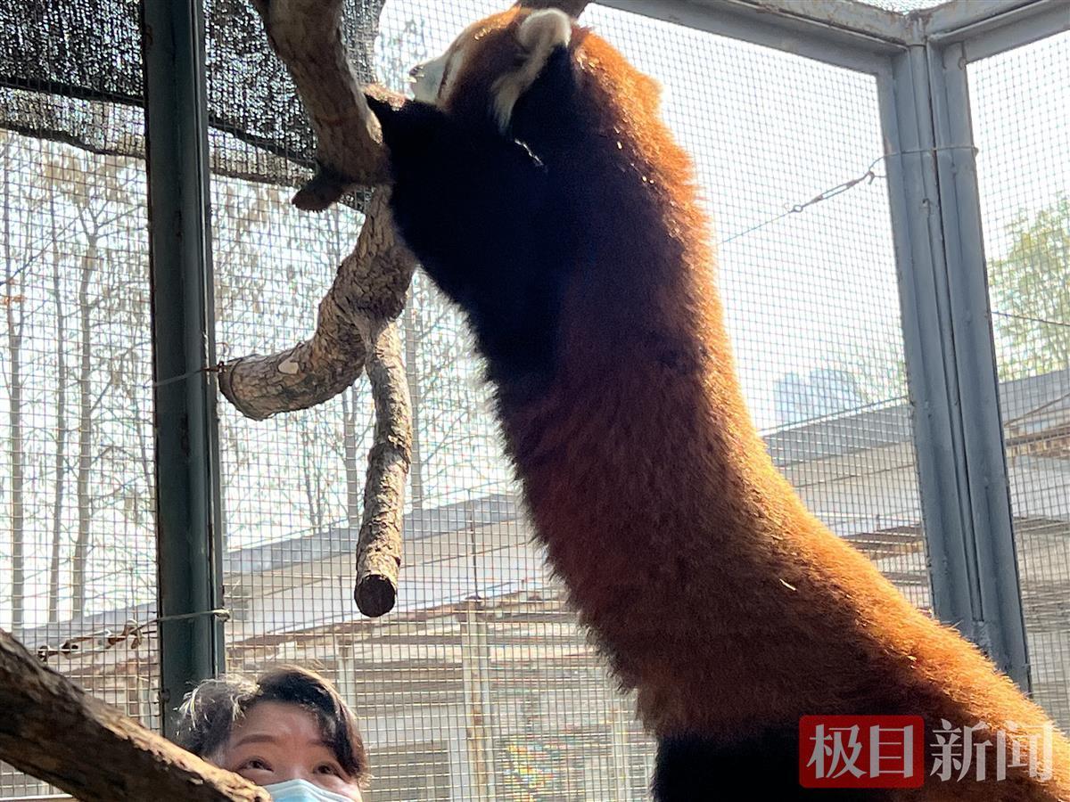 对武汉动物园两只小熊猫来说,饭来张口的日子过去了,如今就餐没那么容易,得跳起来摘桃子啦!