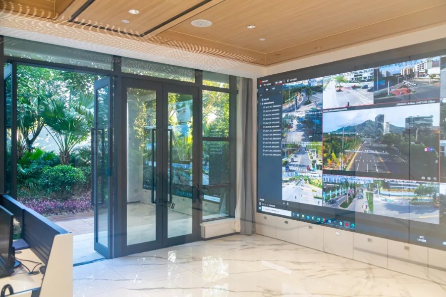 三亚崖州湾科技城管理局园区服务处的监控中心内。三亚崖州湾科技城管理局供图