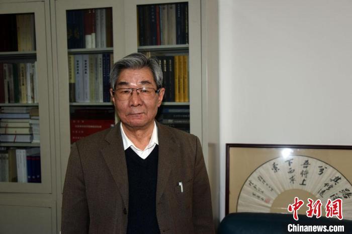白云翔研究员在中国社会科学院考古研究所办公室受访后留影。 中新社记者 孙自法 摄