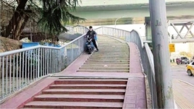 此外,武昌杨园南路、汉口连城路等处的人行天桥,也是梯道带坡道的设计,电动车上下桥均不容易。