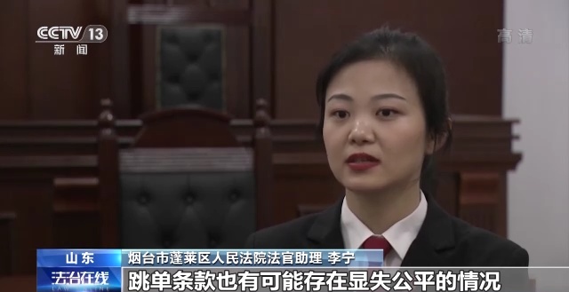 山东省烟台市蓬莱区人民法院法官助理 李宁:跳单条款也有可能存在显失公平的情况,比如说有的中介公司它会在这个委托协议里面约定,就是我方中介人带领买家看房之后,如果你私下交易或者通过其他中介购得此房,那么你也应该支付相应的中介费。
