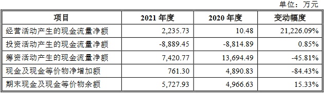 逸豪新材还在招股说明书中披露了2021年度期间经会计师审阅但未经审计的主要财务信息。2021年,逸豪新材实现营业收入12.71亿元,同比增长51.59%;实现归属于母公司所有者的净利润1.63亿元,同比增长182.52%;实现扣除非经常性损益后归属于母公司所有者的净利润1.54亿元,同比增长175.96%;经营活动产生的现金流量净额为2235.73万元,同比增长21226.09%。