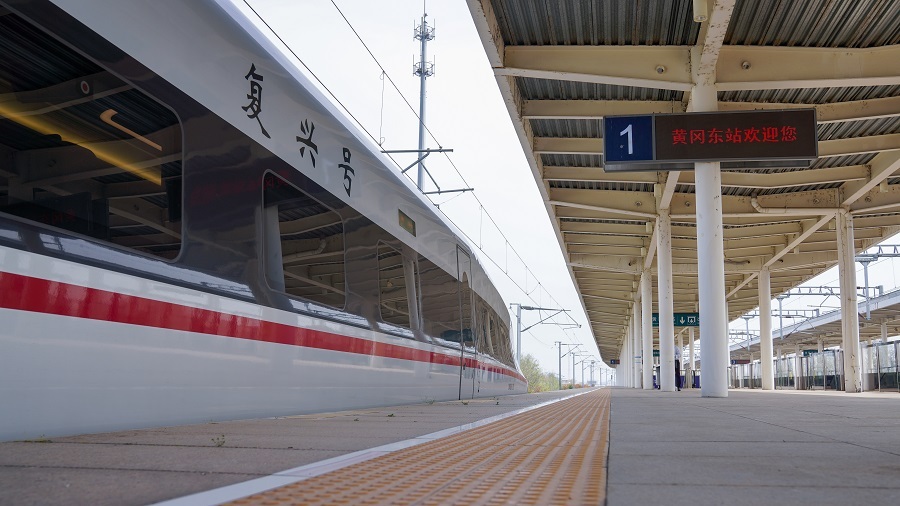 黄黄高铁运行试验列车停靠在黄冈东站。通讯员孟家豪 摄