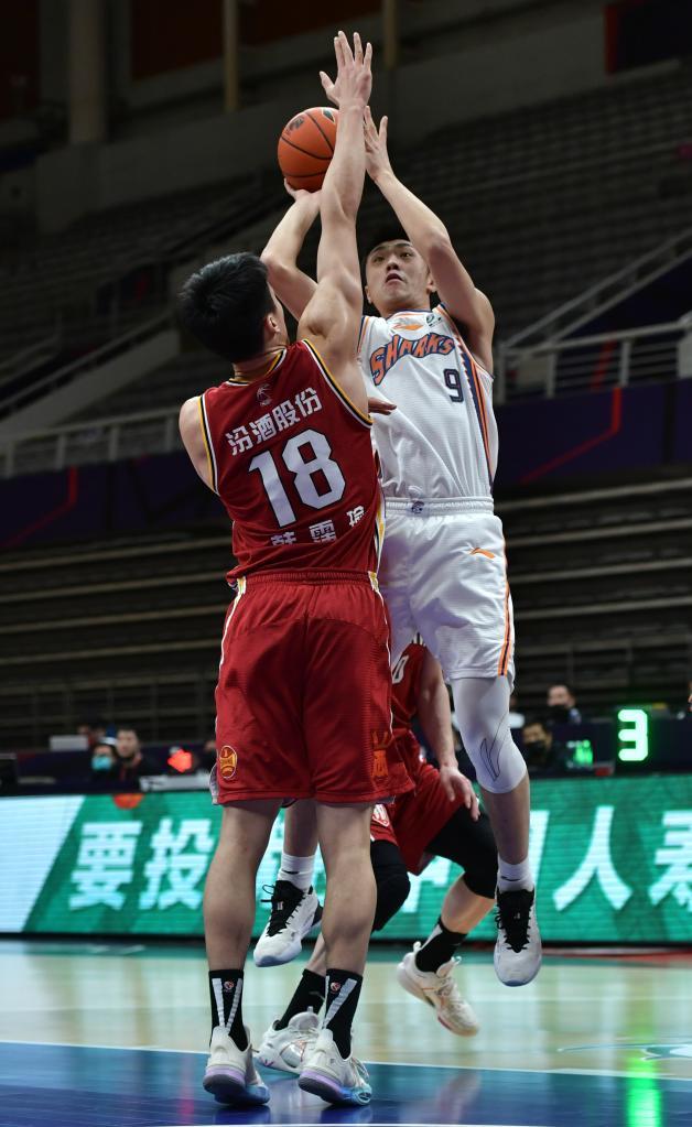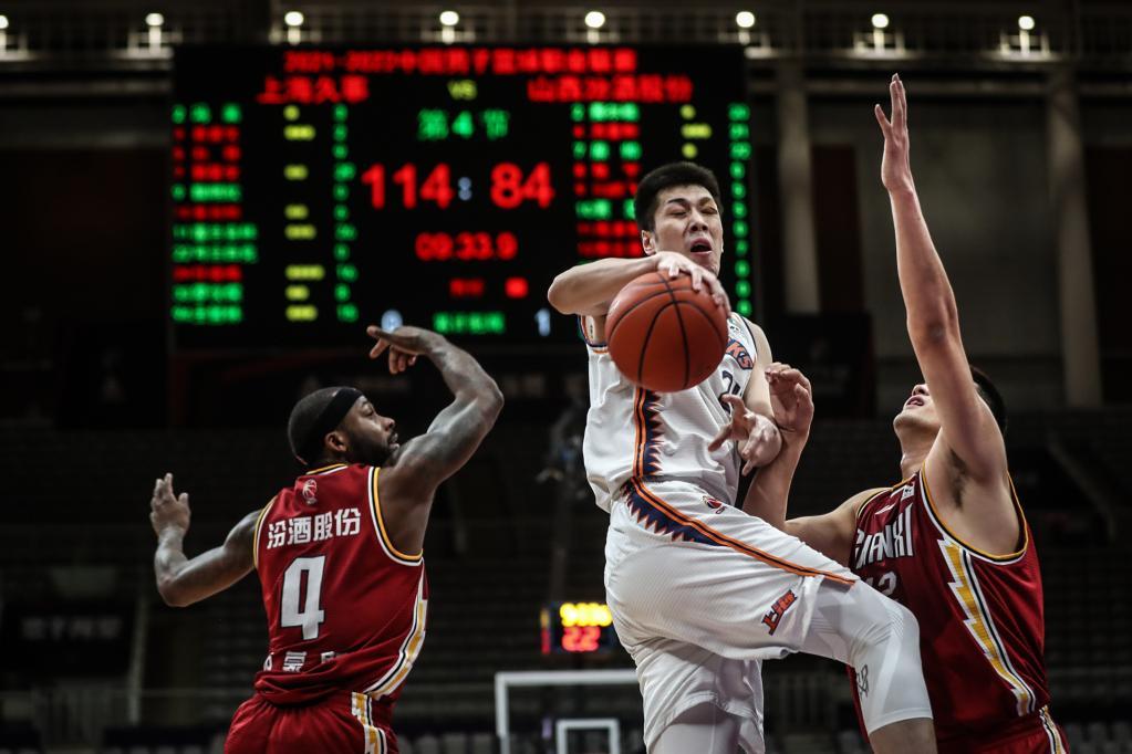当日,在辽宁沈阳进行的2021-2022赛季中国男子篮球职业联赛(CBA)第三阶段第35轮比赛中,上海久事队以135比111战胜山西汾酒股份队。