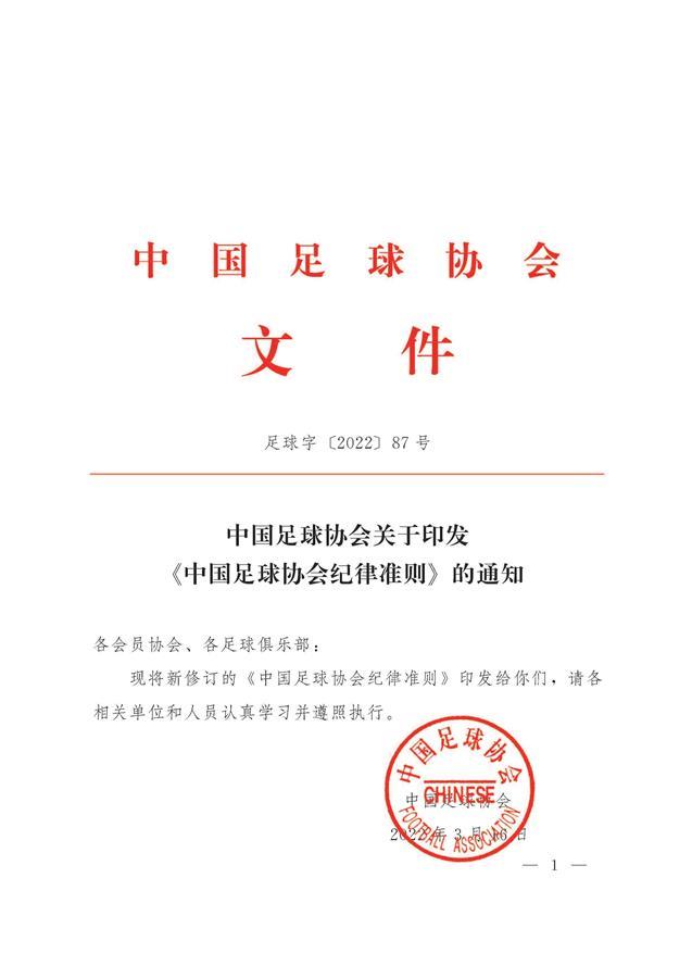 3月16日,中国足协在其官方网站上发布了2022版的《中国足球协会纪律准则》,在准则中规定,如果球员不按时参加国家队集训、比赛,期间不得代表俱乐部参加比赛,对俱乐部也要进行罚款、扣分或其他处罚。
