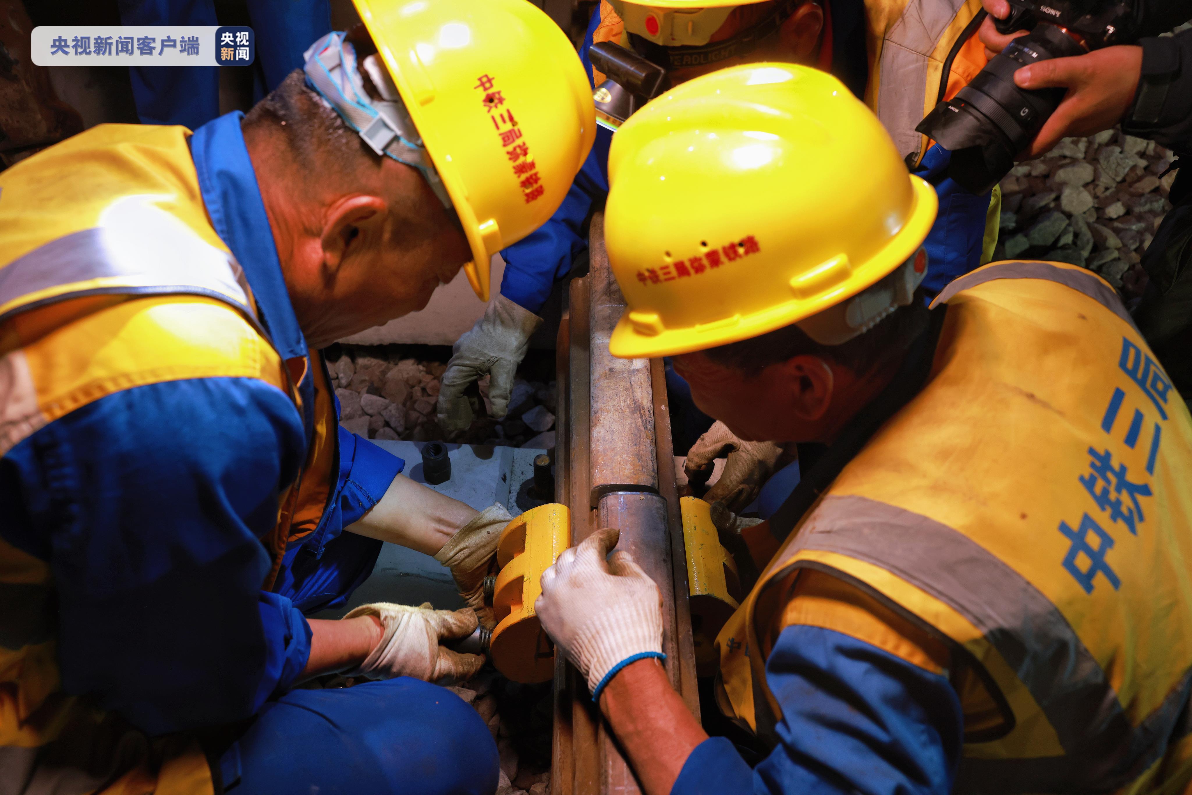 记者在现场看到,21台大型设备机器轰鸣,施工人员分工协作,紧密配合,切割、拨接、焊接等有序展开。凌晨4点,所有工序全部完成,线路达到运行条件。