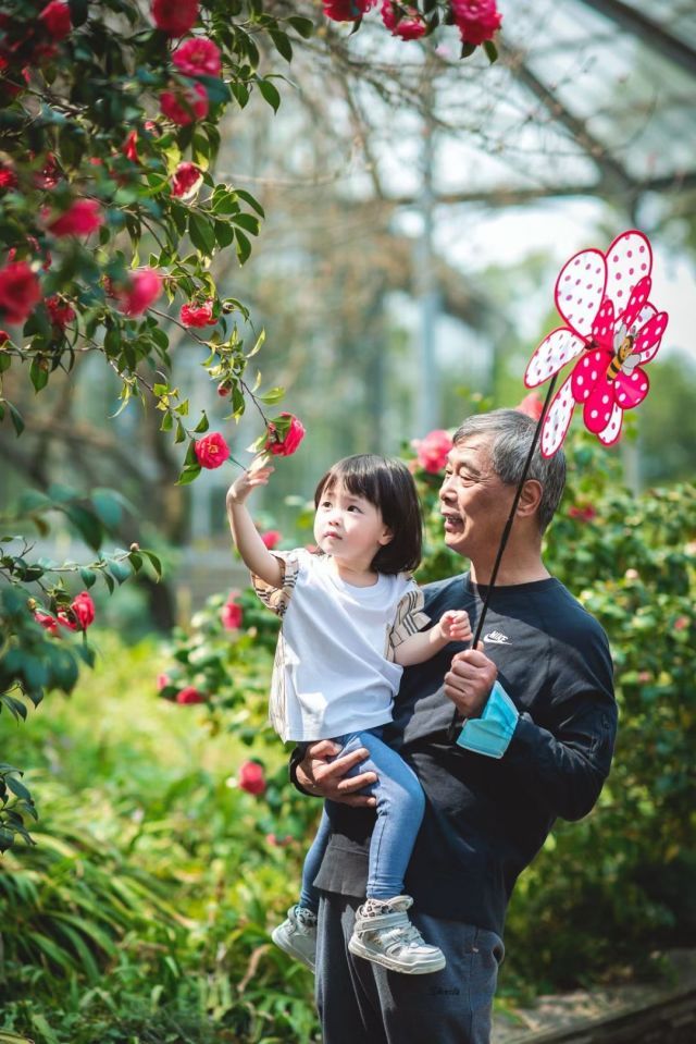 @江岸玲珑认为,春日暖阳下,两代人欣赏着茶花,另外,这张照片可以很好地诠释着武汉人民幸福的生活方式。