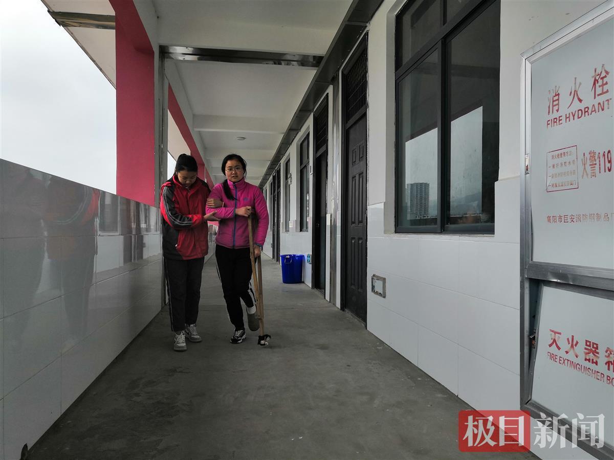 3月20日上午,湖北丹江口市六里坪镇小学的校园里出现动人一幕:一位老师拄着拐杖,在学生的搀扶下,走进教室,然后单脚站立在讲桌前给学生上课。