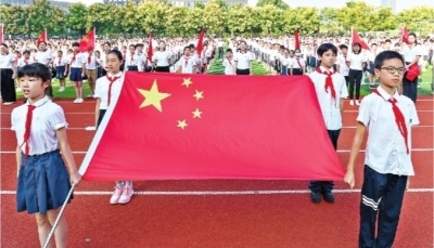 光谷十五小举行升旗仪式。