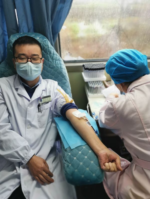 湖北省中医院葛店院区医务人员自愿无偿献血。
