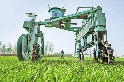 近年来,丰南区大力推进“互联网+农业”,将田间环境信息采集系统、智能灌溉决策系统、农田垄间行走机器人等智能系统及设备运用于大田生产中。这是垄间行走机器人在进行微喷管带铺设。河北日报通讯员 李福政摄