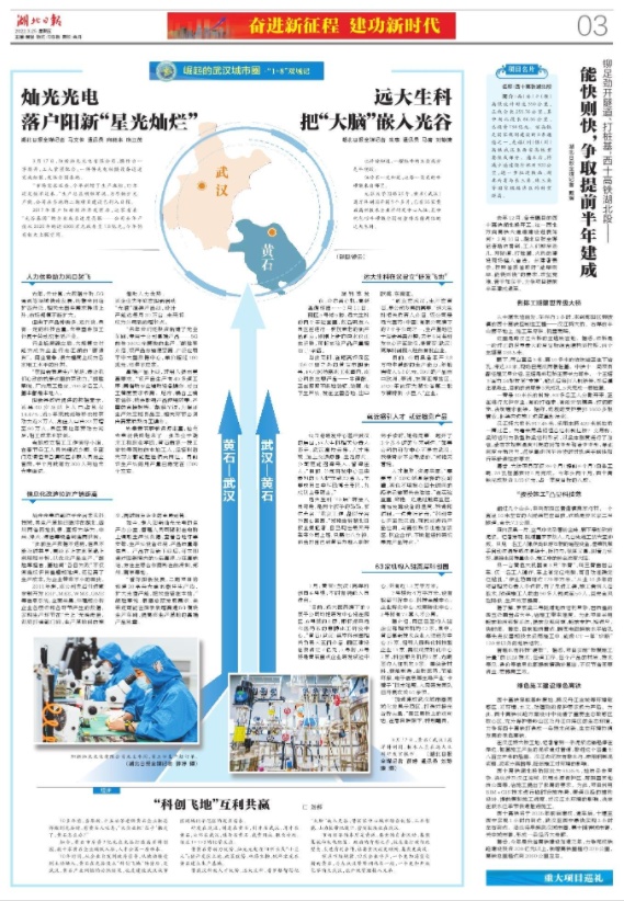 研发在武汉,制造在黄石,引才在武汉,用才在黄石,头部在武汉,链条在黄石,武黄同城,取长补短,催生1+1>2的化学反应。