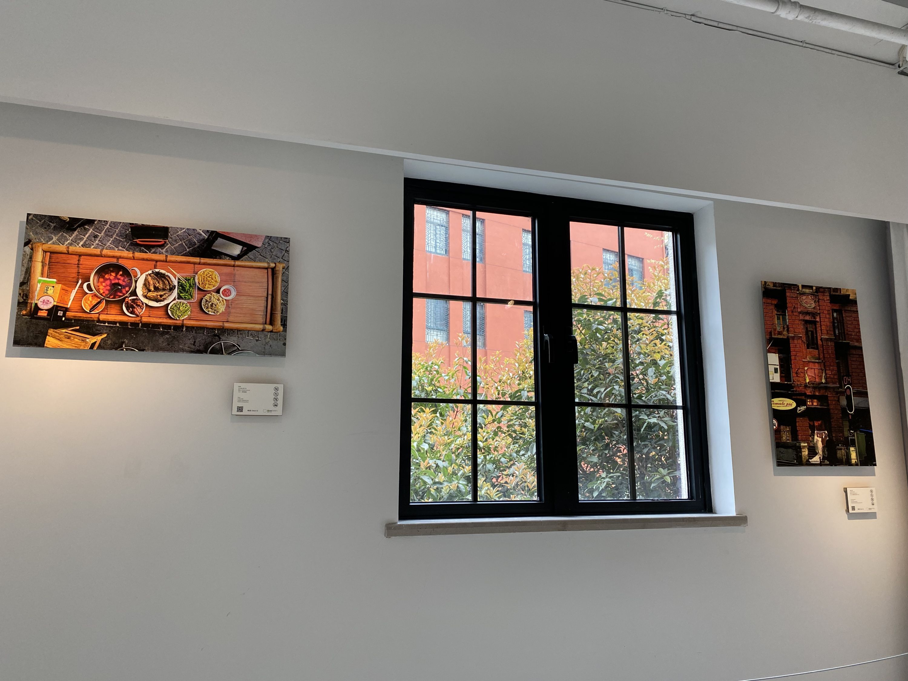 此次摄影展所在地也是一座老建筑——建于1946年的永利银行旧址,“修旧如旧”后成为武汉风貌安坻酒店,以“城市会客厅”模式将生活方式与文化艺术深度融合,助力武汉打造东亚文化之都。展览环境布置暗含巧思:展厅内所有窗户的窗帘都敞开着,透过具有年代感的格子玻璃窗,江汉路上的人来人往、建筑墙面和树木枝丫与厅内的摄影作品一同映入眼帘,又是一种别样的体验。