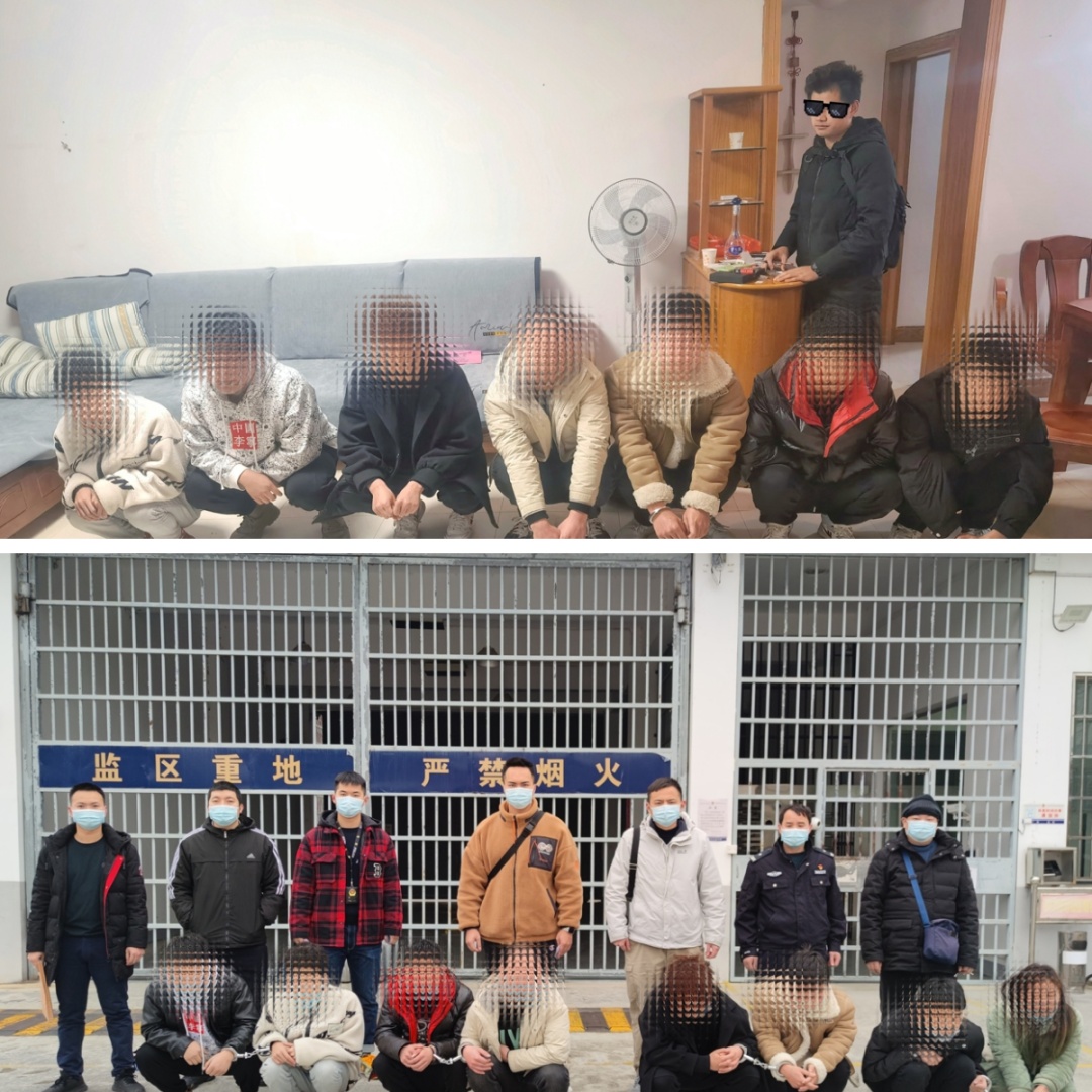 2022年2月23日,在网安部门支持下,办案单位在桂林市七星区某小区一住宅内捣毁该犯罪团伙,抓获犯罪嫌疑人8名,现场缴获作案手机24部,电话卡32张。