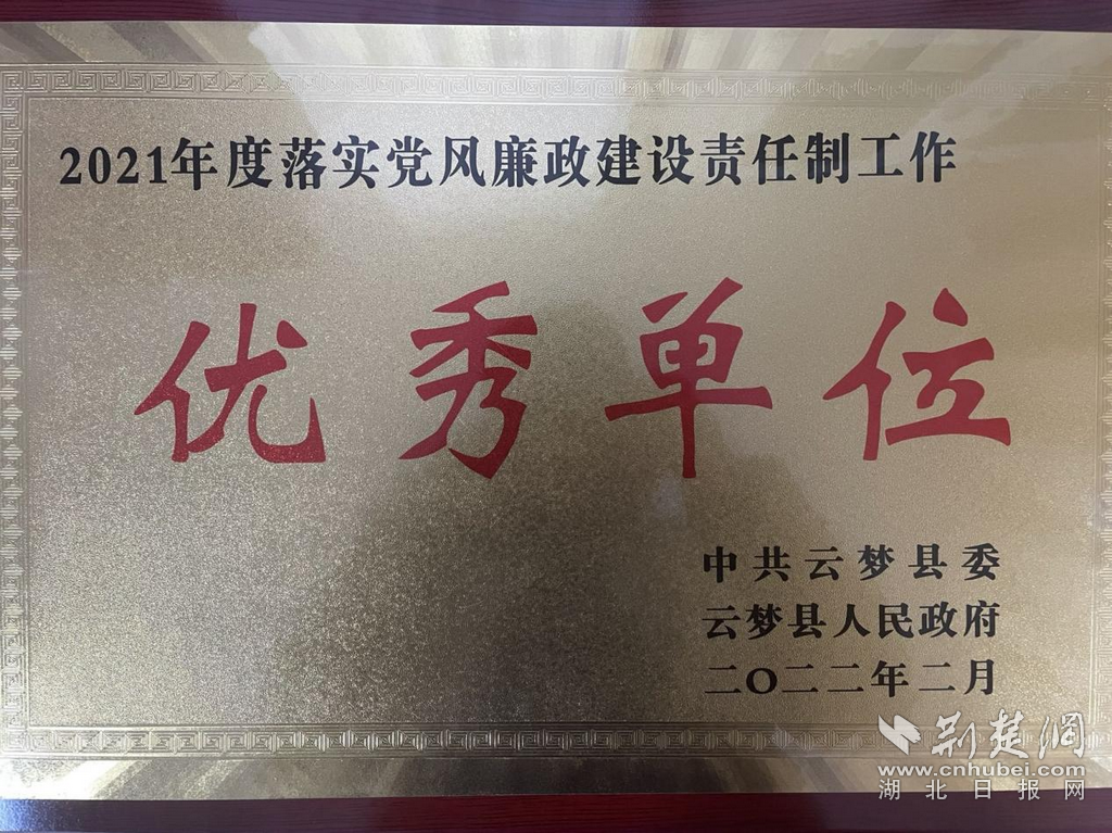 荣获党风廉政建设责任制工作优秀单位。通讯员汤紫薇 供图