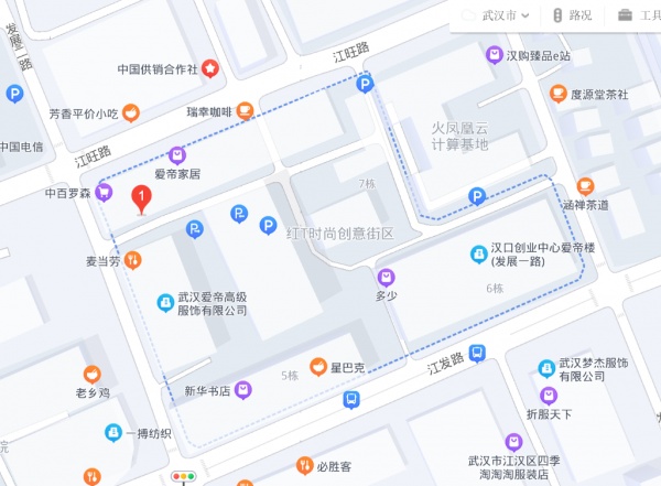 江汉路步行街、江汉路地铁站、水塔美食街、大洋百货商圈