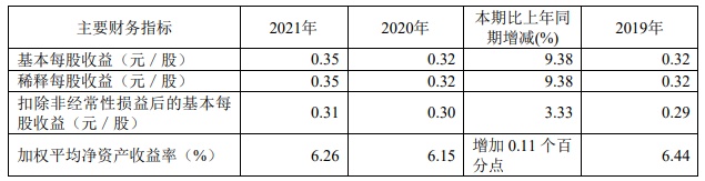 2021年,中银证券基本每股收益为0.35元/股,同比增长9.38%;加权平均净资产收益率为6.26%;同比增加0.11个百分点。