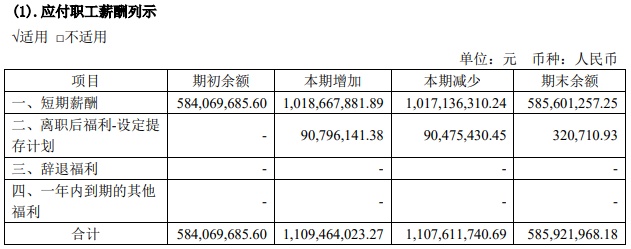 2021年末,中银证券应付职工薪酬为5.86亿元,上年同期为5.84亿元。