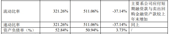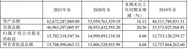 截至2021年末,中银证券资产总额为626.72亿元,同比增长16.15%;负债总额为469.63亿元,同比增长20.56%;资产负债率为52.84%,同比增长3.73%;流动比率为321.26%,同比下降37.14%;速动比率为321.26%,同比下降37.14%,主要系公司应付短期融资款与卖出回购金融资产款较上年末增加。