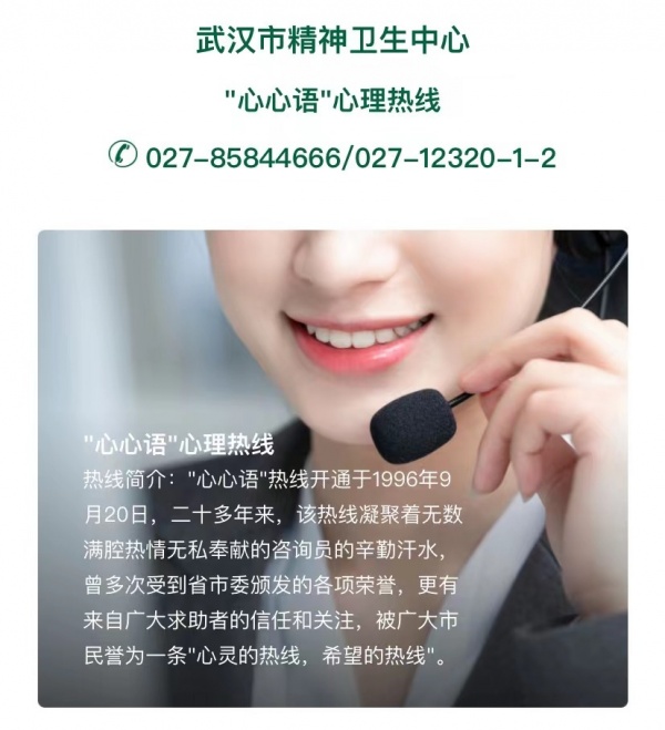 长江日报大武汉客户端3月31日讯(记者毛茵)为帮助大家应对生活中的压力和各种应激事件带来的情绪波动,早期发现自我不良情绪,科学进行心理调适,在武汉市卫生健康委的支持下,武汉市精神卫生中心搭建武汉市心理援助线上平台,目前该平台小程序已正式上线。