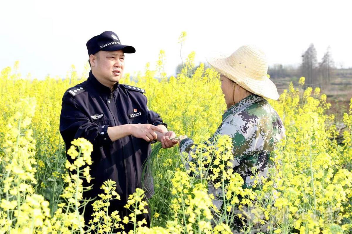 3月28日,武汉市公安局东湖新技术开发区分局滨湖所民警雷勇带领辅警在辖区走访农户,走进田间地头,对辖区重点区域开展巡逻防范,助力农民春耕生产顺利。走访中,民警还向农户们宣传防盗、防骗、防抢等安全知识,为他们答疑解惑,并鼓励大家遇到矛盾纠纷时要善于运用法律途径,依法理性解决问题。