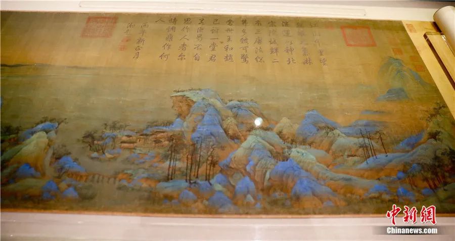 观众在北京故宫博物院参观《千里江山图》。中新社发 刘宪国 摄