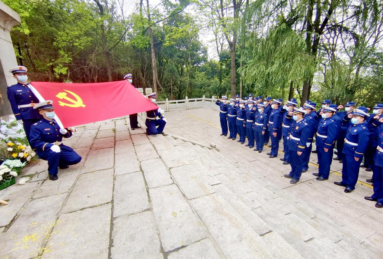 支队各级组织全体消防救援人员前往辖区革命烈士陵园开展“缅怀先烈忆初心 砥砺奋进强党性”爱国主义教育主题扫墓活动。活动中,全体消防救援人员向革命烈士默哀、敬献花圈,共同追忆先辈们为中华民族独立和解放事业英勇捐躯的不朽功绩。在革命烈士纪念碑前全体消防救援人员面对鲜红的党旗,庄严地举起右手,宣读誓词,消防救援人员铿锵有力、掷地有声的誓言表达了对党和人民的无限忠诚。仪式结束后,全体消防救援人员沿碑缓步绕行,为英雄们清扫陵墓、敬献白花、擦拭尘灰,深切缅怀革命烈士不朽功勋。