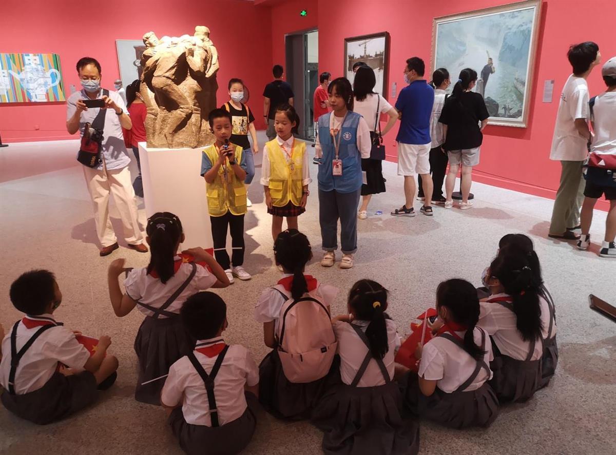 同时,展览特别设置了中英文语音导览服务,并通过线上虚拟VR展览,抖音视频号作品推介,展厅现场专业人员导览等方式为观众提供丰富的展品解说与多维度的观展体验。展览期间,“时代有我 赤心相传”“百名艺术家寄语‘艺术后浪’”“红色之路伴你行——还原经典展览中红色场景,沉浸式体验红色经典”“讲红色故事,做强国少年——红色故事我来讲”等公教活动充分挖掘展览中的红色主题元素,让观众体验红色经典,感悟特殊的红色文化魅力。