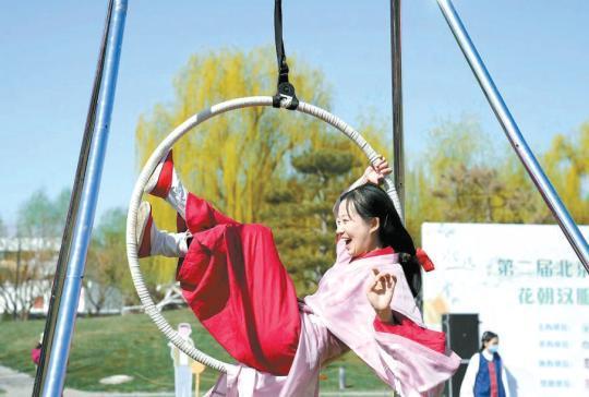 游人参与汉服春日运动秀。本报记者 刘平摄