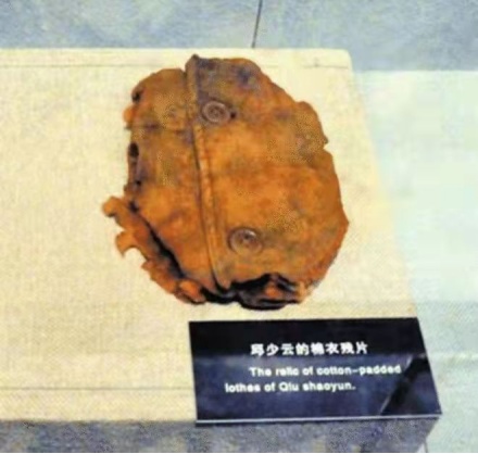在沈阳抗美援朝烈士陵园的陈列柜里,展陈着一件棉衣残片。这巴掌大小的军衣残片,曾经紧贴过烈士最后的心跳。烈火虽然吞噬了一个年轻的生命,但他的名字被亿万中国人铭记:邱少云。